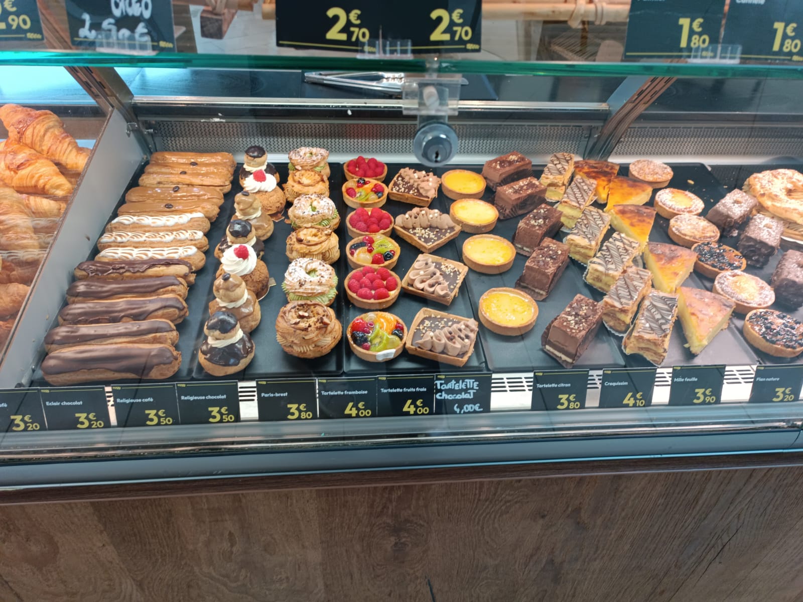 Éclairs gourmands, flans onctueux, tartes de saison et douceurs sucrées.